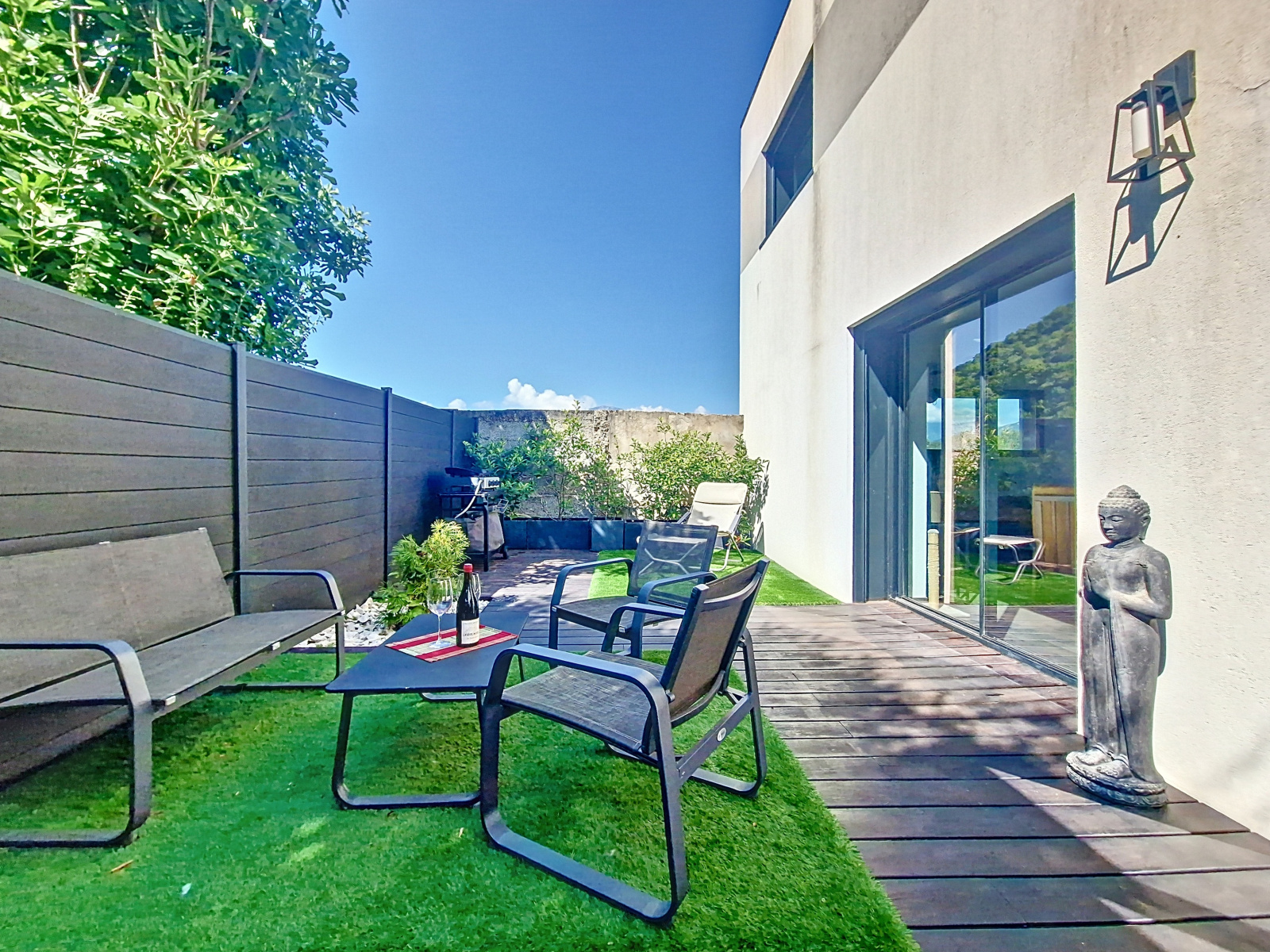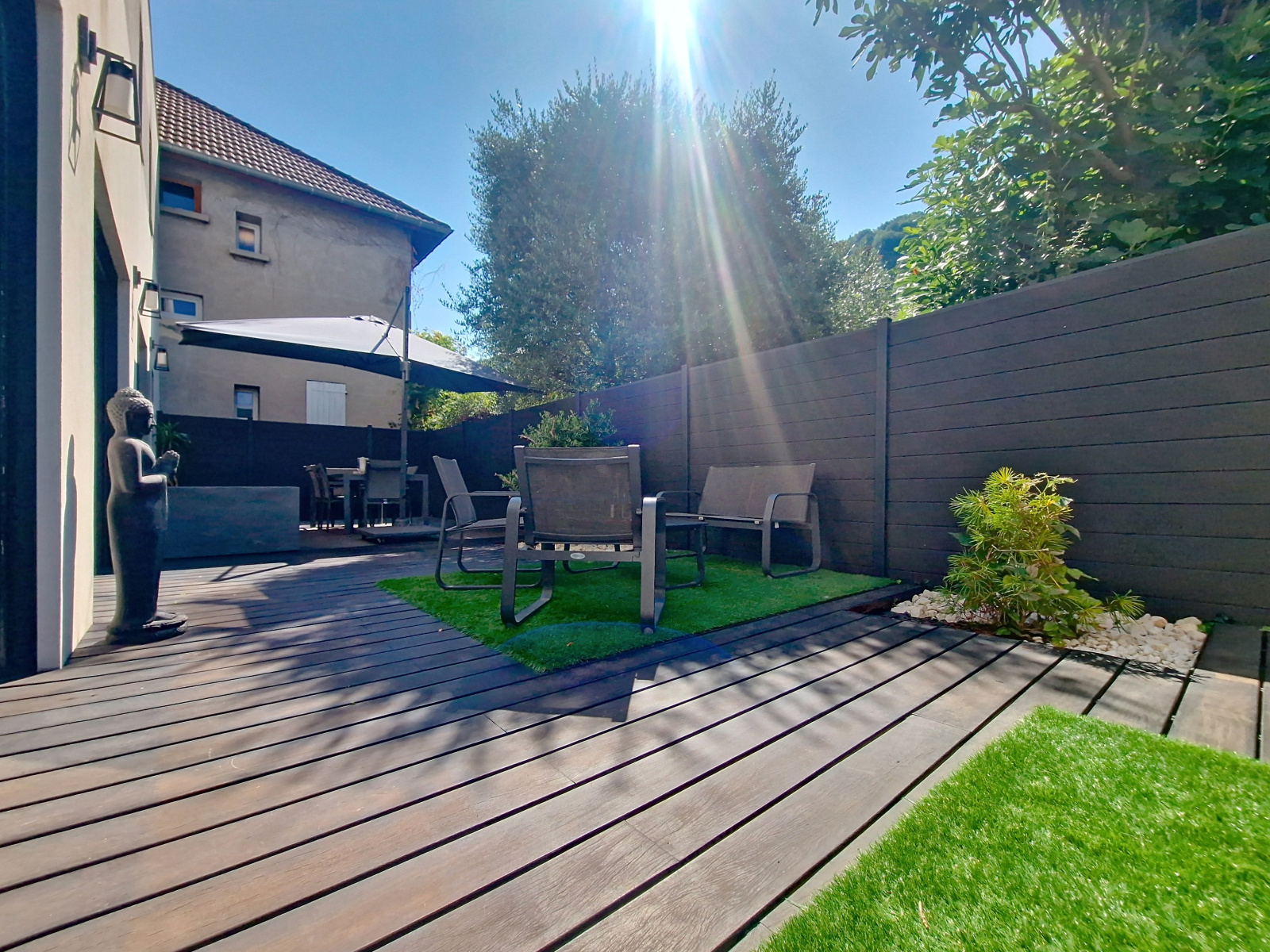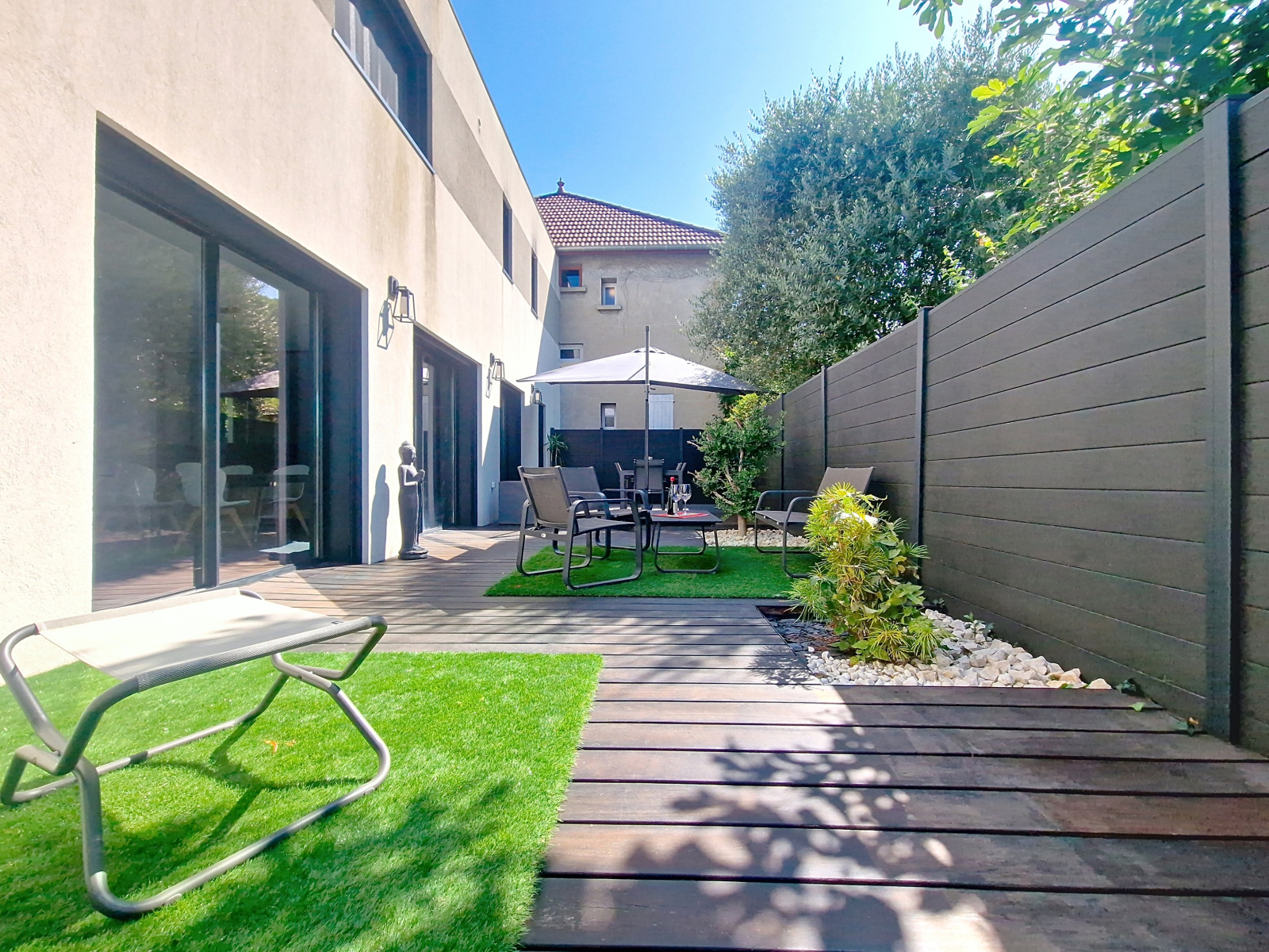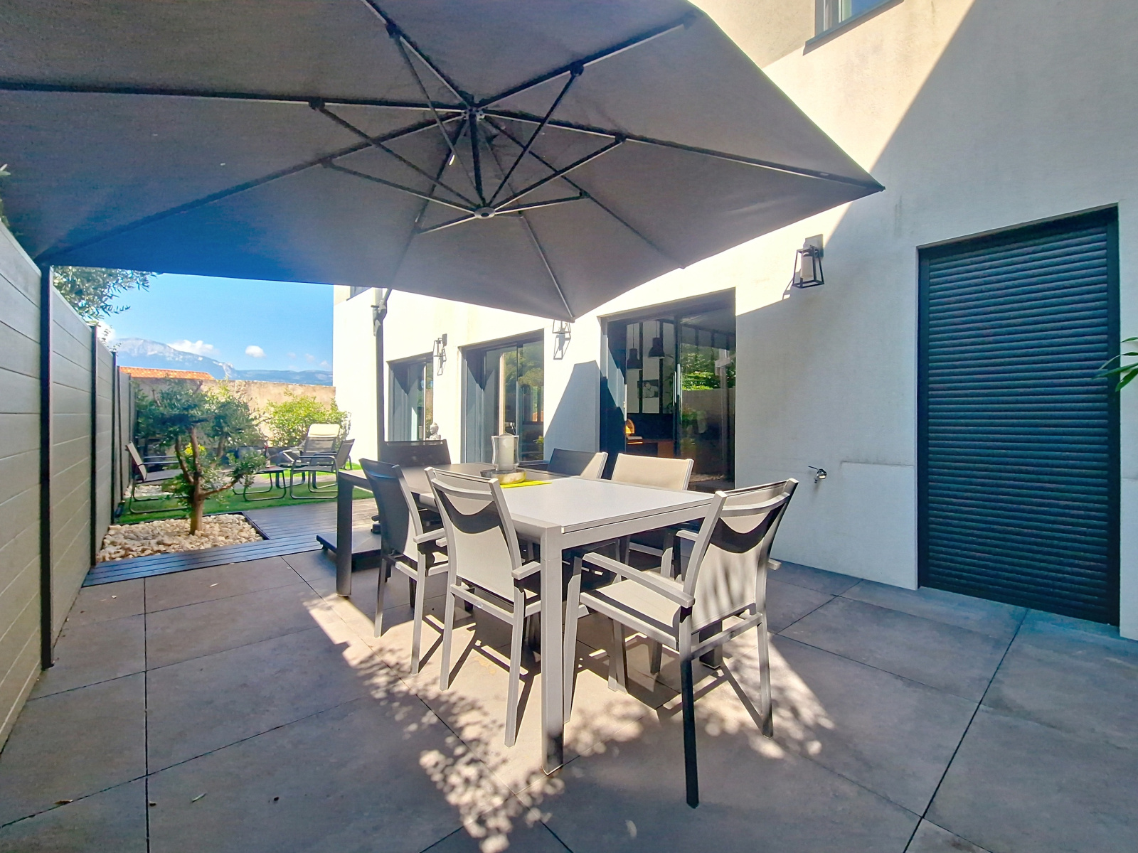 Gières – ancienne grange aménagée par architecte devenue une maison contemporaine mitoyenne de 184 m2 hab sur Terrain de 272 m2 env - 4 chambres + Annexes – grand garage – Vue Chartreuse et Belledonne - Située au cœur de Gières, commune prisée pour sa qualité de vie et sa proximité immédiate de Grenoble, cette maison contemporaine d’architecte séduit par son originalité, ses volumes généreux et ses prestations sur mesure. Un cadre de vie privilégié - À deux pas des écoles, transports (train, tram, bus) et des commerces du centre, cette adresse bénéficie d’un environnement calme et résidentiel, tout en restant parfaitement connectée aux axes principaux. La maison offre une vue dégagée sur la Dent de Crolles et le massif de Belledonne, véritable tableau naturel au fil des saisons. Une architecture lumineuse et inspirante - Derrière sa façade contemporaine se dévoile un intérieur baigné de lumière, pensé pour conjuguer design et convivialité. La pièce de vie principale, vaste et élégante, s’articule autour d’une magnifique verrière sur mesure, offrant un sentiment d’espace et d’ouverture sur le jardin paysagé. Une deuxième terrasse, accessible depuis la cuisine orientée nord-ouest, invite à profiter de la vue sur la Chartreuse. Une chambre est disponible sur ce niveau. Les escaliers, menuiseries et rangements ont été réalisés sur mesure, avec un soin particulier porté à l’esthétique et à la fonctionnalité. Espace nuit et autonomie eu dernier étage : La maison propose 4 chambres avec placards sur mesure, dont une suite parentale avec dressing et salle d’eau privative. Une seconde salle de bain pour les enfants. une pièce au RDC complète le bien avec point d’eau — Confort et équipements : Chauffage par plancher rayonnant électrique et poêle à granulés Flamme Verte avec programmateur. Nombreux rangements intégrés, pensés avec intelligence. Très grand garage et dépendances. Maison mitoyenne, mais parfaitement isolée et ouverte sur ses extérieurs pour préserver l’intimité. Un bien rare à Gières Alliant design, confort et fonctionnalité, cette maison atypique incarne une qualité de vie contemporaine dans un environnement naturel recherché. Un bien rare, idéal pour les familles en quête d’espace, de modernité et de lumière. Accompagnement gratuit et sans frais pour cette étude. Les informations sur les risques auxquels ce bien est exposé sont disponibles sur le site Géorisques : www.georisques.gouv.fr. Sandrine BESSET, statut agent commercial indépendant pour HOMENCY Immobilier - Pour plus d'informations contactez moi au 06 66 69 08 86. SIRET 488 744 343