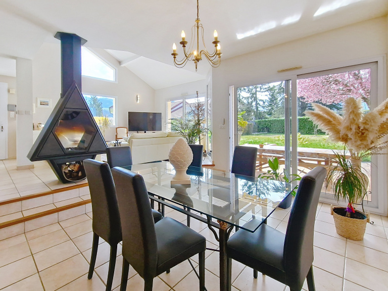 HAUT DE JARRIE, SANDRINE BESSET SPECIALISTE DEPUIS 15 ANS DE GRENOBLE AGGLOMERATION (ISERE 38) - Belle maison individuelle d’architecte des années 2000 de 165 m², édifiée sur un terrain de 905 m² entretenu et paysagé. Située dans un lotissement prisé au calme avec vue vercors et belledonne. Véritable havre de paix à seulement quelques minutes de Grenoble ! Cette maison séduira les amoureux de beaux volumes et de convivialité. Elle offre un vaste espace de vie lumineux donnant sur terrasse et jardin. L’ensemble est sublimé par une cheminée centrale qui invite à la détente côté salon et salle à manger (beaux volumes et hauteur, vue mezzanine). La cuisine séparée, équipée de portes coulissantes à galandage, vous permettra de préparer vos repas en toute tranquillité tout en profitant d’une belle perspective d’ouverture. Disposez de 4 chambres, une belle mezzanine pour un espace bureau et second salon au dernier étage (possible 5ème chambre ou très grande suite parentale) selon vos besoins. Elle dispose également d’une buanderie, d’une belle cave aménagée et d’un carport pouvant abriter deux véhicules, en plus d’un garage fermé et d’un portail électrique pour plus de confort et de sécurité. Idéal pour une famille elle est proche des écoles primaires et maternelle du centre de Haut de jarrie.Très bon DPE : C - Chauffage Géothermie (sol chauffant) + clim + Cheminée. Taxe foncière : 2077 €/an – Lotissement Charges 200 €/an. A voir absolument ! Contact : Sandrine Besset Agent co indépendant 06 66 69 08 86 RSAC 488 744 343 - Agence HOMENCY IMMOBILIER - Les informations sur l exposition aux risques du bien disponibles sur le site Géorisques : www. georisques.gouv.fr