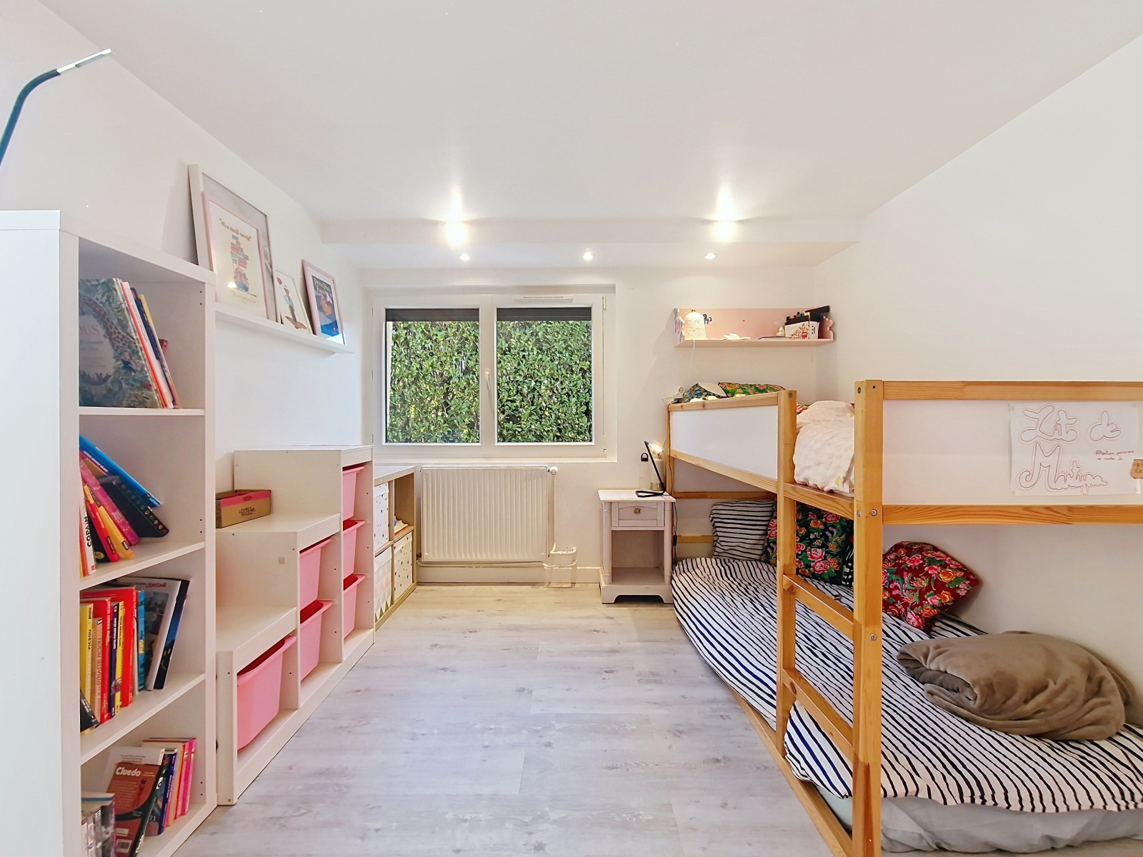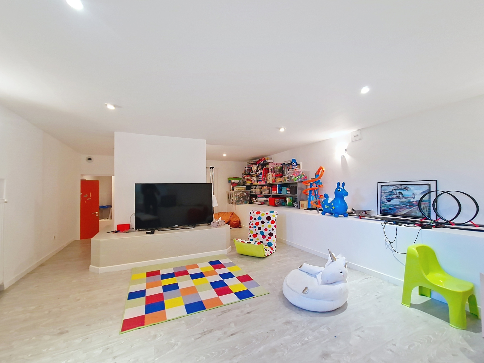 La maison dispose d’un niveau inférieur aménagé et fonctionnel. Vaste salle de jeux polyvalente offrant une réelle indépendance aux enfants ou adolescents et peut accueillir home cinéma, atelier ou salle multimédia. Ce niveau comprend trois chambres, une salle d’eau avec wc et une cave.