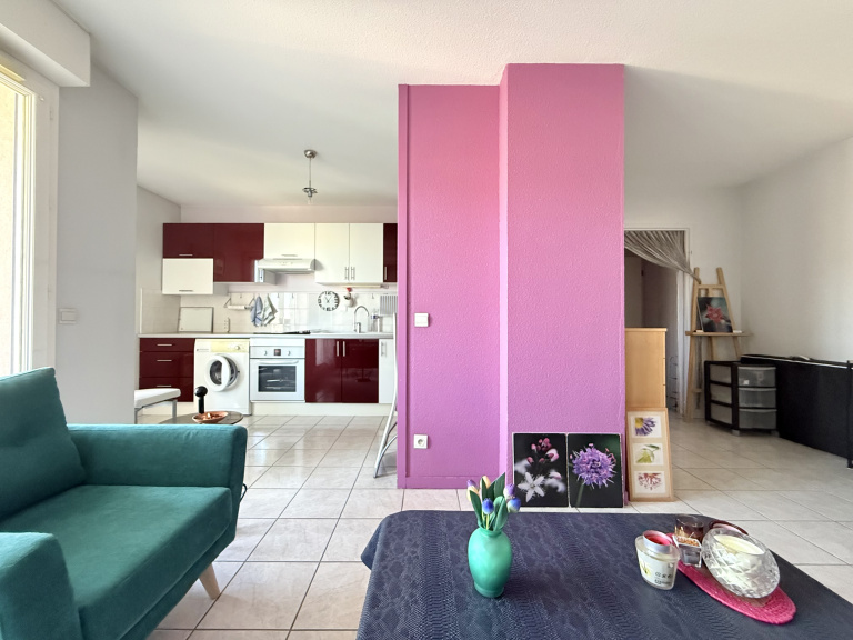 Coup de cœur pour cet appartement T2 de 46 m² situé dans une copropriété fermée de 1995 avec portail et parking sécurisé. Situé au 5ᵉ étage sur 7 avec ascenseur, il offre un beau volume lumineux et fonctionnel. Il se compose d’une spacieuse pièce de vie de 28 m² avec cuisine équipée ouverte donnant sur un balcon d’environ 5 m², d’une chambre de 11 m² avec placard, d’une salle de bain et d’un toilette indépendant. Le bien est vendu avec une cave et peut également bénéficier d’un garage (en sus). Idéalement situé dans un quartier agréable, avec écoles, commerces et transports en commun à proximité. Parfait pour un premier achat, un pied-à-terre ou un investissement locatif.